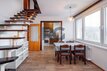 V přízemí bytu se nachází obývací pokoj s jídelnou, kuchyně, ložnice se vstupem na balkon a dětský pokoj. Každý pokoj má samostatný vstup z chodby, žádný pokoj není průchozí. Dále je zde k dispozici technická místnost, ve které je umístěn plynový kotel a je zde místo pro pračku, koupelna s vanou a samostatná toaleta. Podkroví bytu nabízí pracovnu a jeden pokoj s vlastní koupelnou, ve které je sprchový kout. Byt je vybaven kuchyňskou linkou včetně spotřebičů (elektrická trouba, varná deska, mikrovlnná trouba, digestoř, myčka nádobí, lednice s mrazákem). Veškeré vybavení bytu je možné ponechat. Vytápění a ohřev vody je zajištěn vlastním plynovým kondenzačním kotlem.