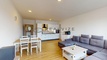 Dispozice bytu tvoří vstupní předsíň (cca 8,6 m2), ze které je samostatný vstup do všech místností. Hlavní obytnou část tvoří obývací pokoj s kuchyňským koutem o výměře cca 34,21 m2. Kuchyňská linka je vybavena vestavnými spotřebiči včetně myčky nádobí. Ložnice o velikosti cca 21,85 m2 umožňuje kromě klasického zařízení také vytvoření pracovního koutu nebo šatní části. Součástí bytu je koupelna o výměře cca 6,41 m2, která je vybavena vanou, dvojumyvadlem, závěsným WC a přípravou pro pračku. Velkým benefitem je okno v koupelně, díky kterému je možné přirozené větrání.