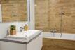 V bytě jsme využili na maximum každý centrimetr. Vybudovali jsme technickou místnost, do které si zároveň můžete uložit boty a a kabáty a mít tak neustále pořádek na chodbě. Koupelna je nadstandardních rozměrů a díky obrovskému oknu a dennímu světlu patří k dominantě bytu.