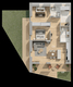 Dispozice nabízí obývací pokoj s kuchyní, dvě ložnice, vstupní chodbu a dvě koupelny, což je v této kategorii výrazný nadstandard. Více komfortu, více soukromí, lepší využití jak pro rodinu, tak pro krátkodobé pronájmy. Samozřejmostí je dostatek úložných prostor řešených s důrazem na praktičnost.